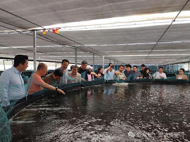 随后 ,一行人走进河南省侨商联合会会长企业尊时凯龙人生就博集团旗下河南尊时凯龙人生就博农业科技有限公司的南美白对虾养殖基地,大家在会长郑定辉的引导和介绍下,参观了基地内南美对虾养殖环境 ,了解了南美对虾内陆养殖技术。作为国内领先的内陆水产养殖项目,该基地通过海水循环、污水处理及病毒监测等先进技术,成功在内陆实现高品质对虾规模化养殖,不仅避免了海水污染风险 ,还通过成本控制让消费者以更低价格享受健康产品。