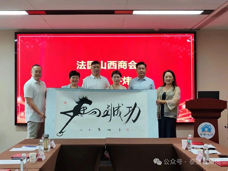 活动尾声,法国山西商会向法国河南侨商联合会捐赠名家书法“马到成功”以示祝贺;华人头条河南频道总编杨泽涛代表向法国河南侨商联合会赠送了书法家许广丽敬题的书法贺联“智汇中原通瀚海,商联寰宇利中法 !”
